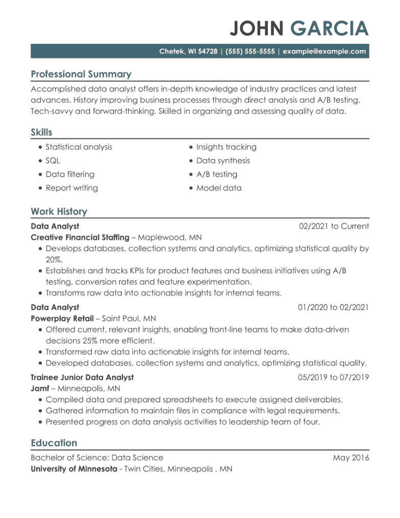 Data Analyst Resume Sample & Writing Tips Resume Companion , This article will guide you through crafting a. Get your next job as a data analyst with the help of our expertly crafted resume examples.